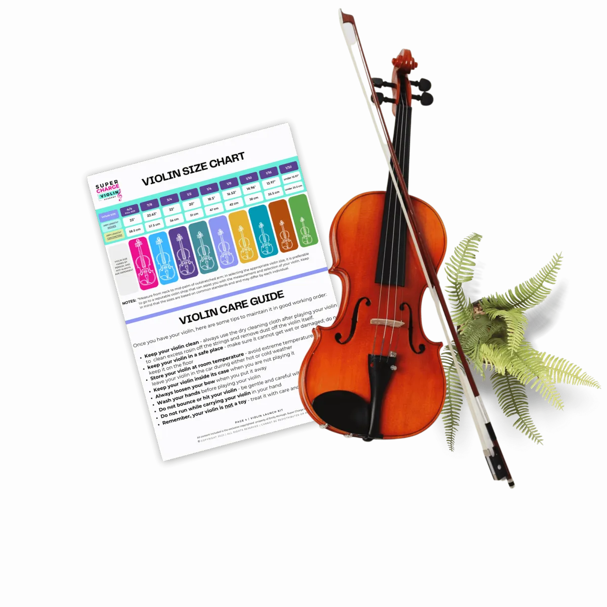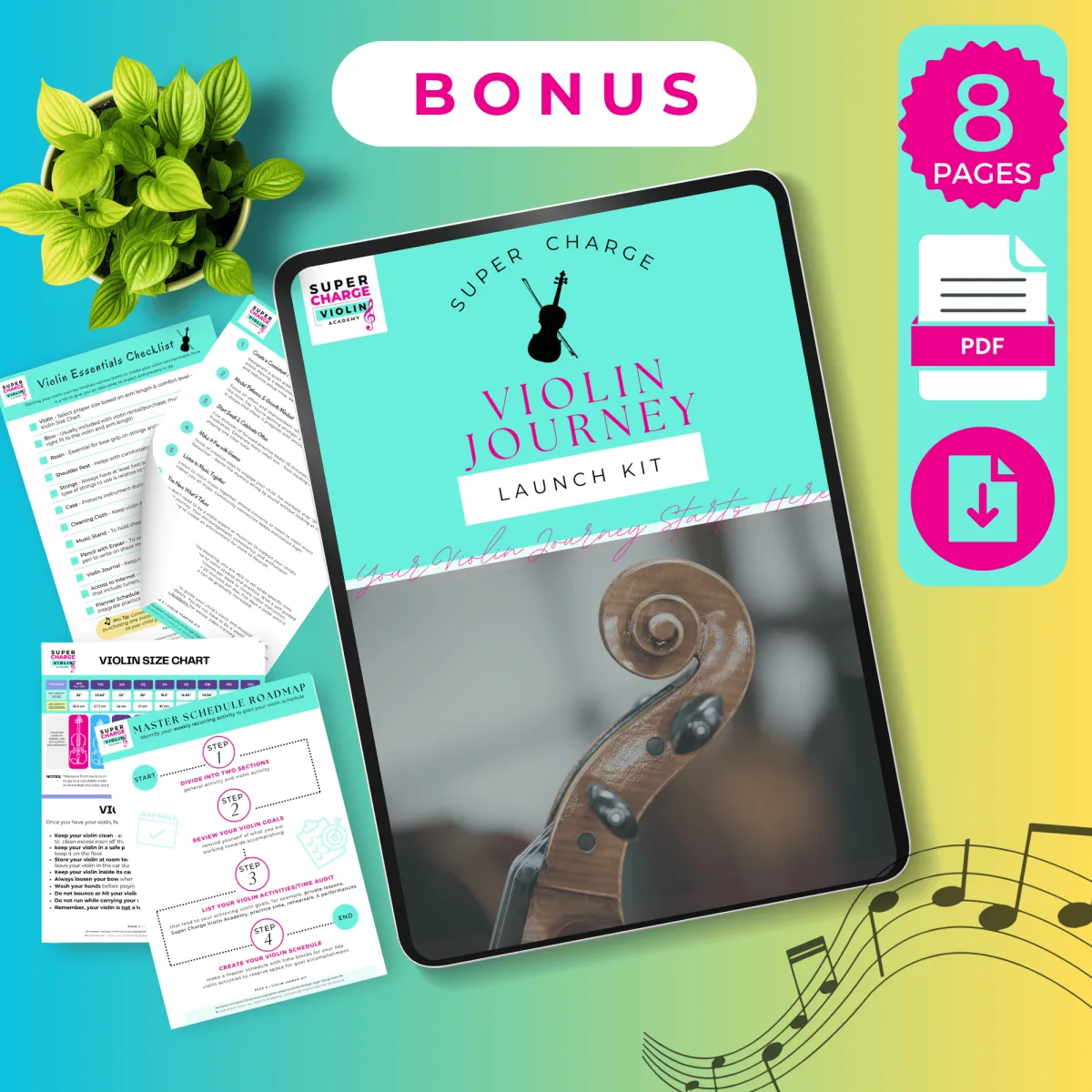 A: This is a free tool in the form of a multi-page checklist with essential insights that will help you launch or re-launch your violin journey with confidence and focus. For example, how to select the right size violin, success checklist, and more.